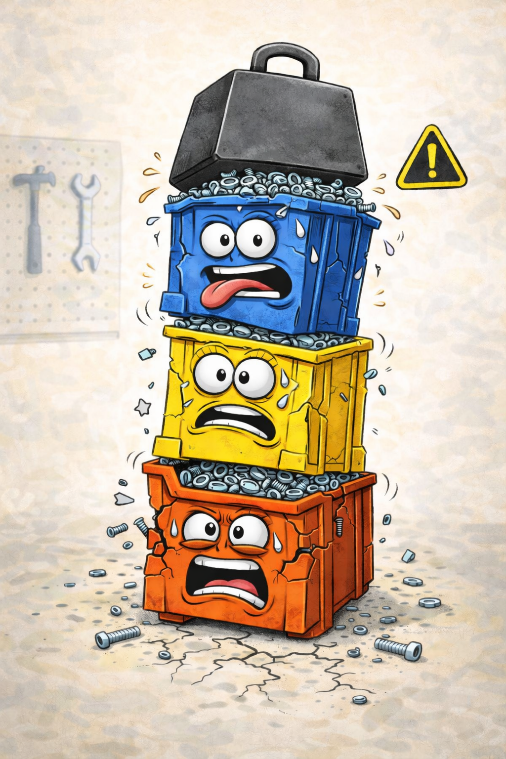 Jinými slovy: to, co zvládne jedna přepravka samostatně, nemusí automaticky zvládnout celá věž. A právě tady lidé často chybují.