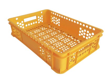 Plastová pekařská přepravka – nízká 60×40 cm z HDPE. Perforovaná, stohovatelná a praktická pro pečivo, potraviny i stěhování.