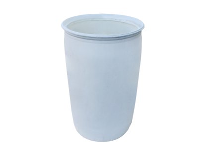 Plastový sud 160 l bez víka z HDPE. Jednou použitý, nezávadný, vhodný pro potraviny. Otevřený sud pro skladování a manipulaci.