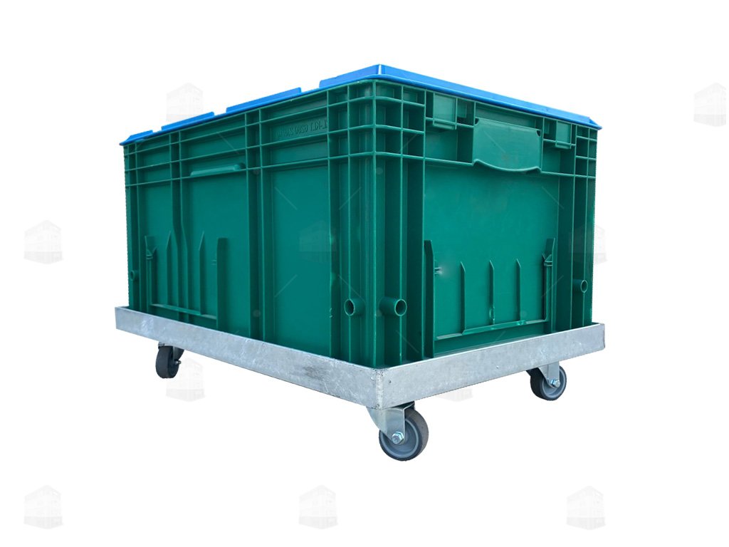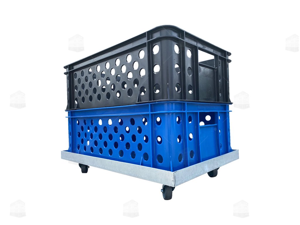 Robustní transportní podvozek je určený pro snadnou a bezpečnou manipulaci s plastovými přepravkami o rozměru 60 × 40 cm.